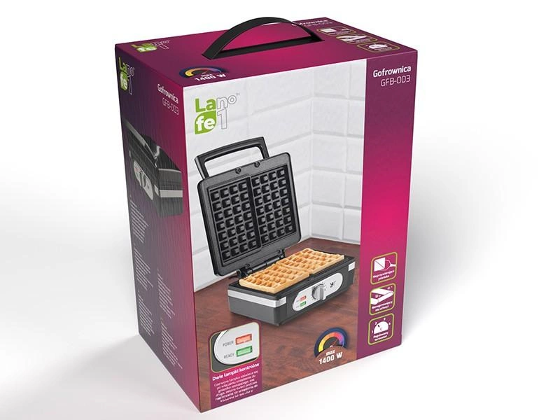 Sekret idealnych gofrów tkwi w dobrej gofrownicy. Urządzenie Lafe wyposażono w grzałkę o potężnej mocy 1400 W. Dzięki temu domowe gofry będą równo wypieczone. Odporny na nagrzewanie uchwyt stanowi zabezpieczenie przed oparzeniem.