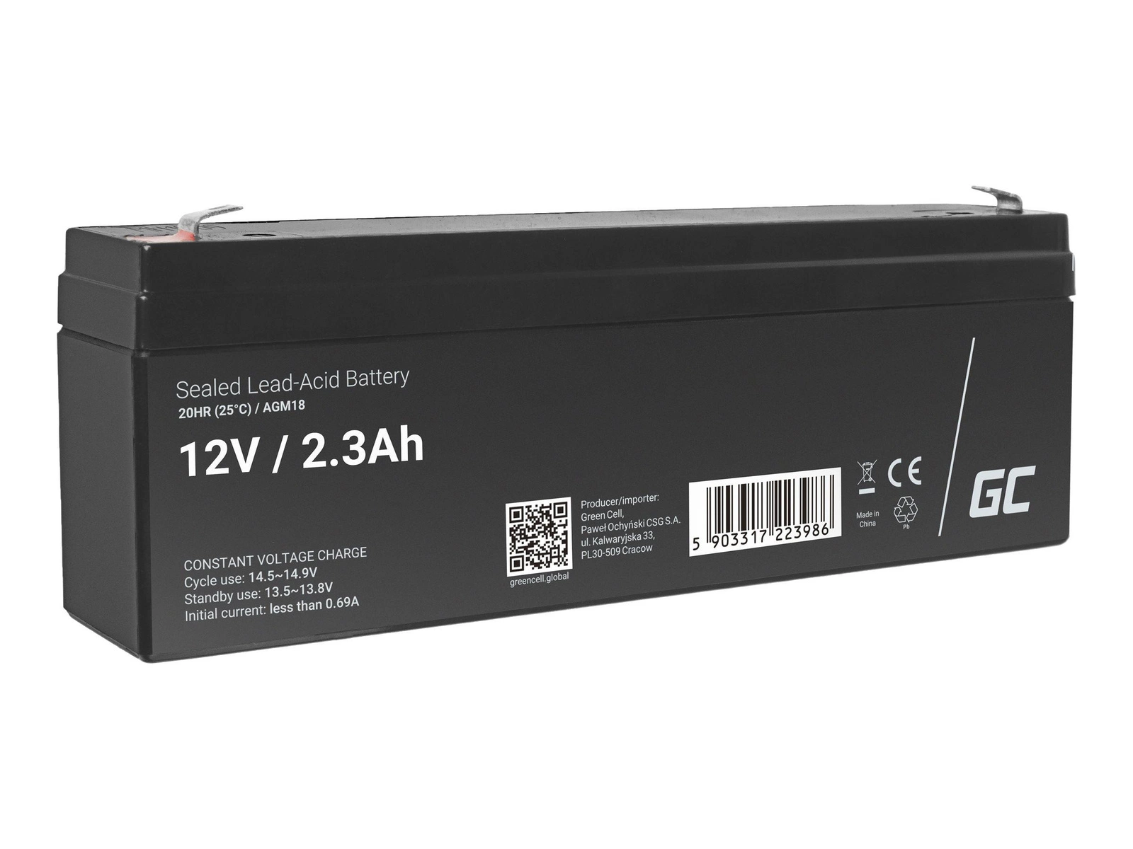 GREEN CELL Battery AGM 12V 2.3 Ah