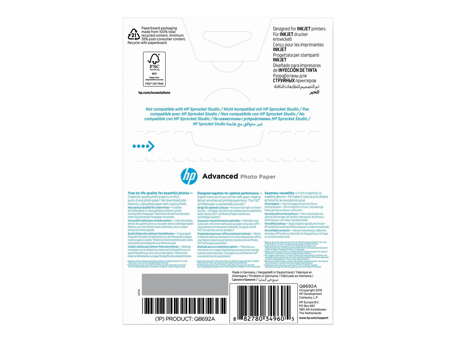 HP Q8692A Papier HP Advanced Glossy Photo 250g 10x15cm borderless 100ark