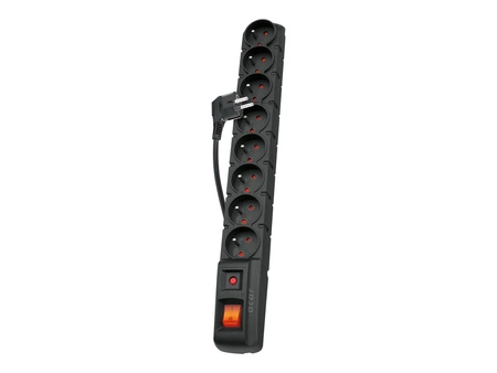 HSKDATA W0148 Acar S8 listwa zasilająco-filtrująca, 8 gniazd, czarna, 3m
