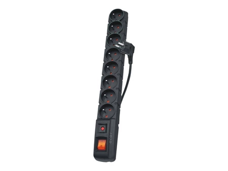 HSKDATA W1751 Acar S8 dual, listwa przeciwprzepięciowa, 8 gniazd, czarna, 5,0m