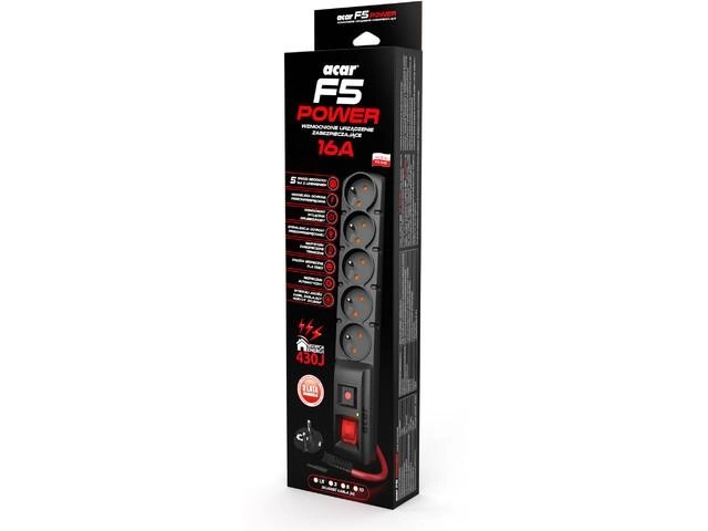 Listwa zasilająca ACAR F5 Power 10M 5X 230V PL Czarna 16A