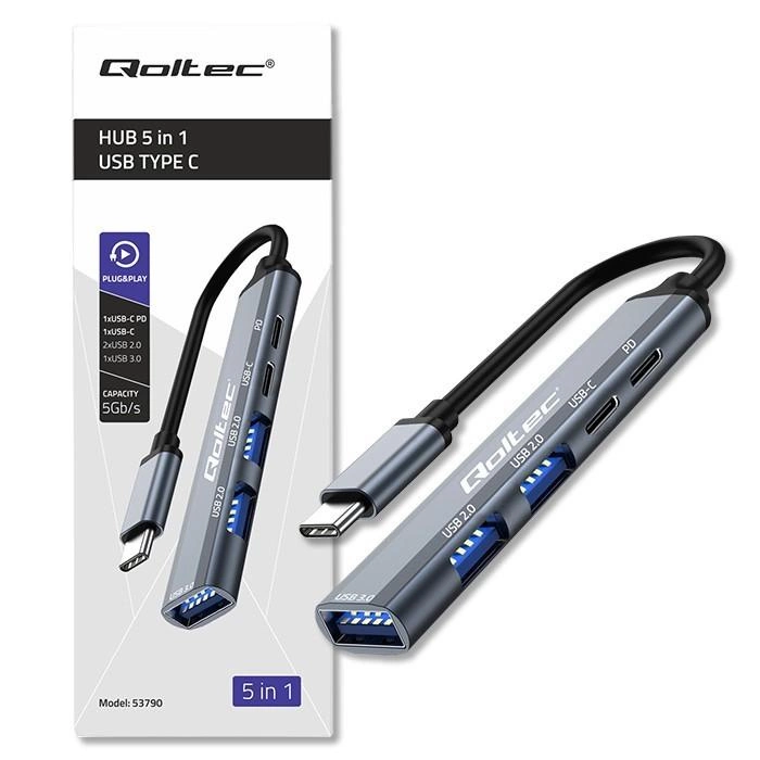 HUB adapter USB-C 3.1 5w1 | USB-C PD | USB-C | 2x USB 2.0 | USB 3.0