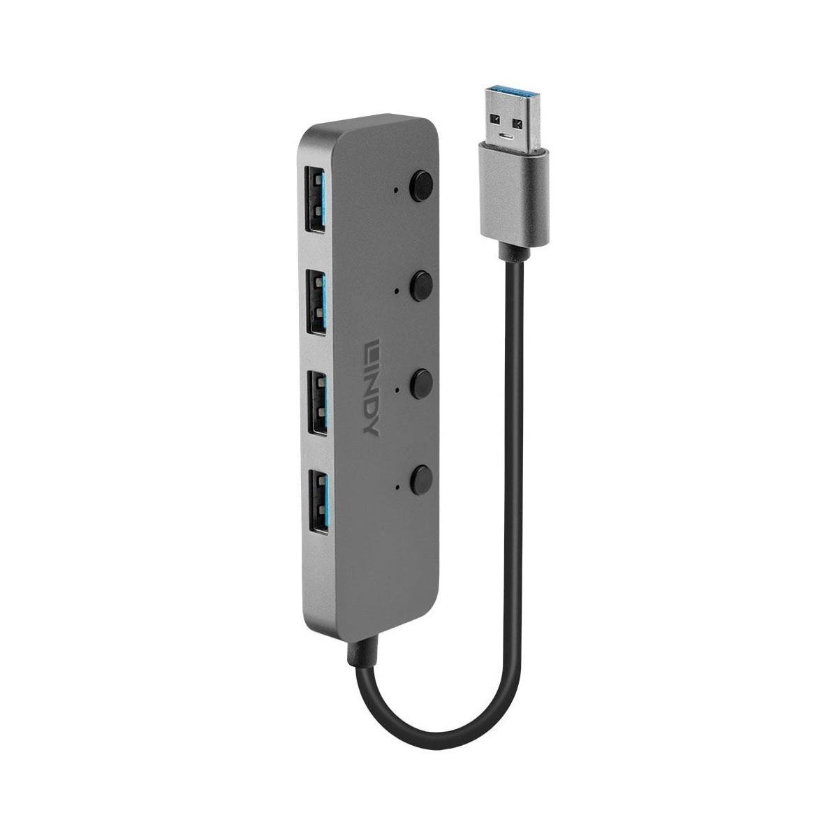 Hub USB 3.0 LINDY 3 Ports, RJ-45 Gigabit Ethernet, czarny