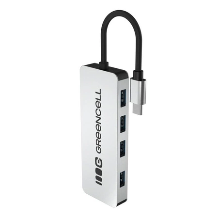 Greencell Basic HUB USB-C 4in1 (4× USB-A 3.0), adapter do Apple MacBook i innych laptopów szybki transfer, kompaktowy design