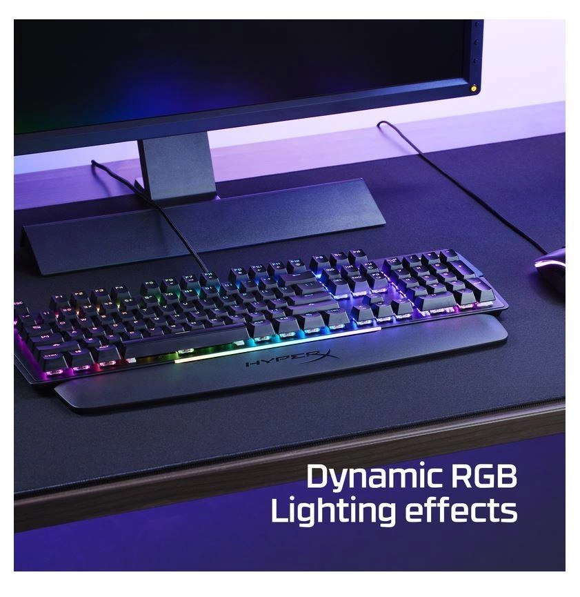 HyperX Alloy MKW100 to niedroga, pełnowymiarowa klawiatura mechaniczna, która świetnie nadaje się do gier, pracy i szkoły. Spersonalizuj swoją klawiaturę dzięki dynamicznemu oświetleniu RGB i efektom, które można łatwo dostosować za pomocą oprogramowania HyperX NGENUITY. Zapisz do 3 profili oświetlenia w pamięci klawiatury, aby ulubione efekty były zawsze łatwo dostępne. Alloy MKW100 ma trwałą ramę ze szczotkowanego aluminium i charakteryzuje się niezawodną r dzięki pyłoszczelnym odpornym na kurz przełącznikom mechanicznym o wytrzymałości do 50 milionów naciśnięć.