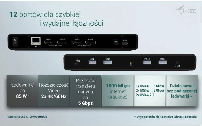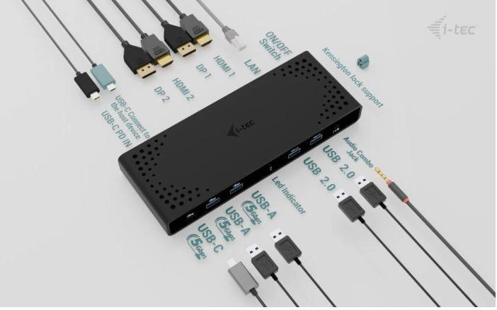I-TEC Universal Dual 4K Display Docking Station PD 85W + USB-C Charger 100W