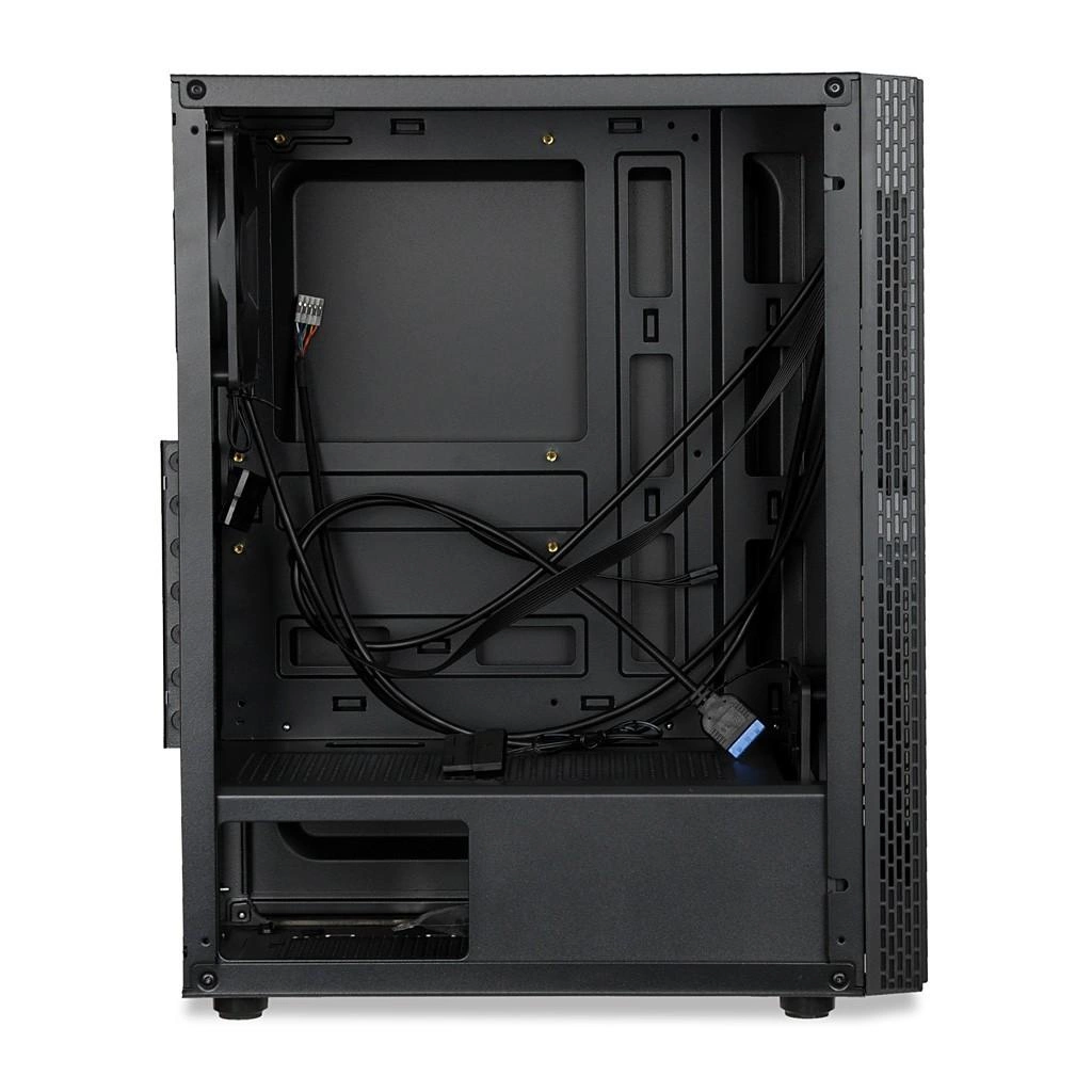 Obudowa wyposażona w trzy porty USB. Struktura obudowy w kolorze czarnym nadaje elegancji a system aranżacji kabli pozwala uporządkować wnętrze. Na górze znalazła się kratka wentylacyjna zmiejscem na dodatkowe wentylatory 120 mm a na dole znajduje się filtr przeciwpyłkowy.