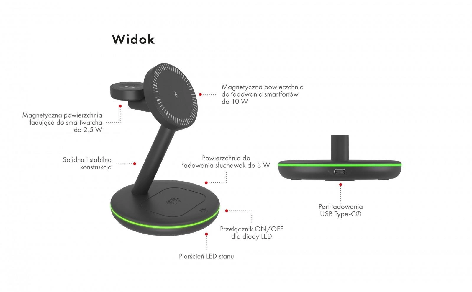 Bezprzewodowa stacja ładująca 3 w 1 dla smartfona, smartwatcha i słuchawek