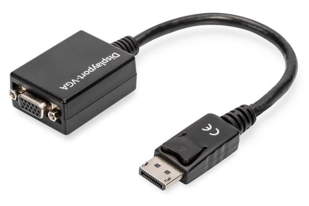 Kabel adapter DIGITUS DisplayPort z zatrzaskiem 1080p 60Hz FHD Typ DP/DSUB15 M/Ż czarny 0.15m
