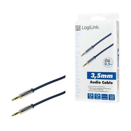 Kabel audio stereo LogiLink CA10050 3,5 mm, M/M, 0,5m, niebieski