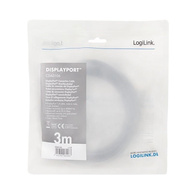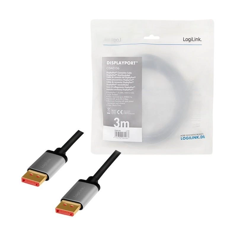 Kabel DisplayPort 8K/60 Hz,DP/M do DP/M aluminium 3m