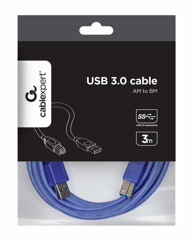 Kabel GEMBIRD CCP-USB3-AMBM-10 (USB 3.0 M - USB 3.0 Typu B M; 3m; kolor niebieski)