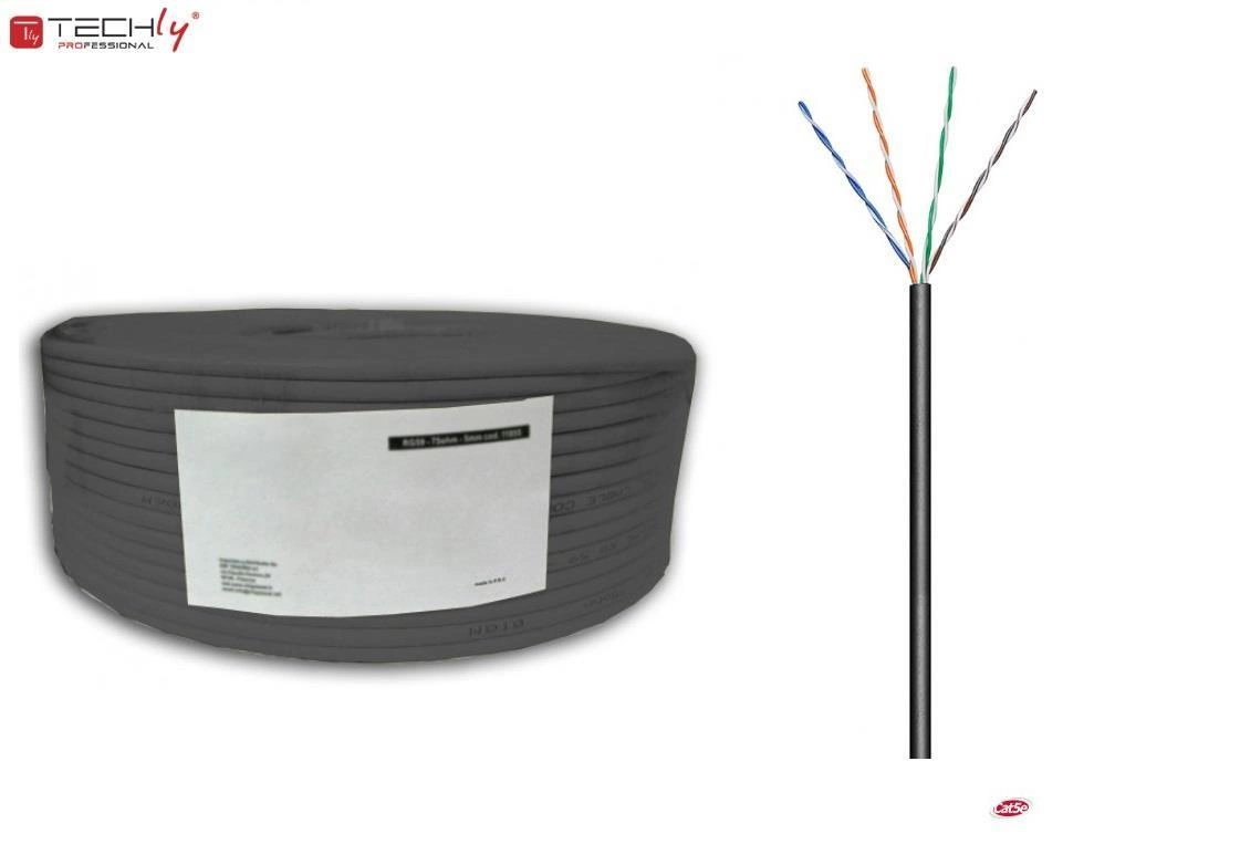 Kabel instalacyjny TechlyPro skrętka Cat5e U/UTP drut, 100m czarny