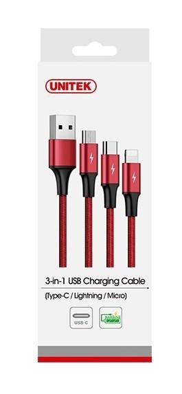 Kabel ładujący 3-in-1 USB - USB-C/microUSB/Lightning, 1,2m; C4049RD