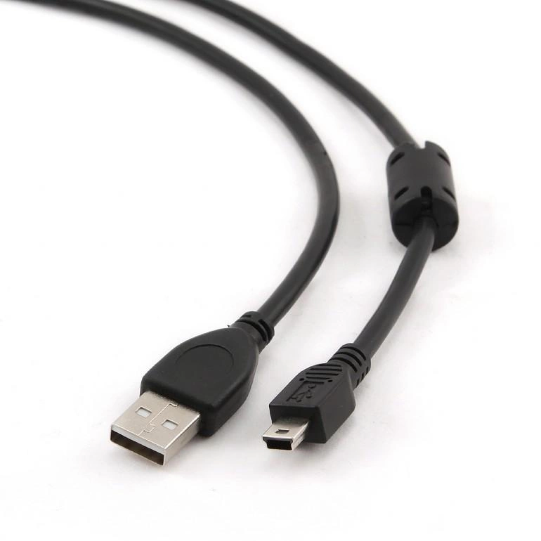Kabel USB z tykiem mini USB typu canon, bardzo popularny do łaczenia aparatu cyfrowego z komputerem lub nawigacji z komputerem. Rdzeń ferrytowy eliminuje zakłócenia.