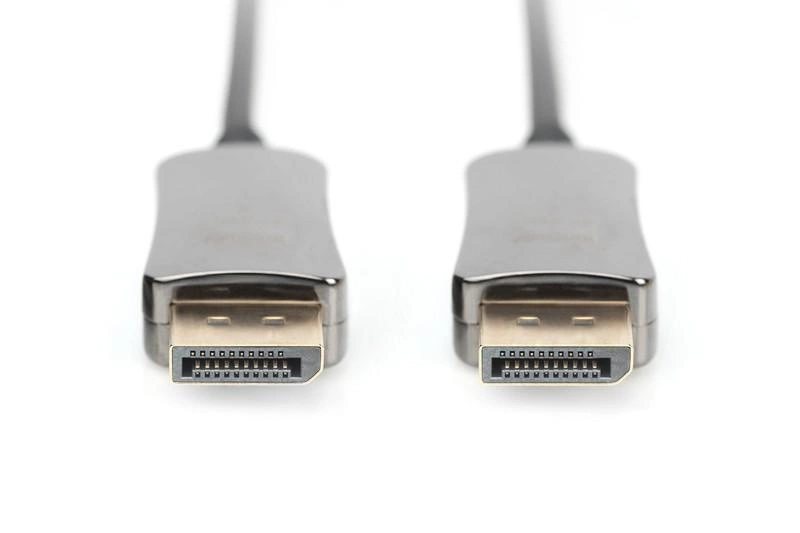 Ten aktywny hybrydowy kabel światłowodowy DisplayPort AOC jest idealny do przesyłania nieskompresowanego obrazu i dźwięku z dużą przepustowością na większe odległości. Hybrydowa struktura składająca się z przewodów miedzianych i światłowodowych eliminuje zakłócenia elektromagnetyczne, zapewniając bezstratną transmisję na całej długości kabla, z rozdzielczością UHD do 8K / 60 Hz i przepustowością do 32,4 Gb/s. Ze względu na zastosowanie przewodów optycznych (włókna szklanego) średnica kabla jest niewielka i charakteryzuje się bardzo małymi promieniami gięcia i niską masą własną. Idealne do użytku w domu, pomieszczeniach przeznaczonych na spotkania biznesowe lub salach konferencyjnych oraz w budynkach, które stanowią tylko niektóre obszary zastosowania. Łatwa instalacja odbywa się za pomocą funkcji Plug and Play, podłącz i od razu ciesz się najwyższą jakością obrazu. Obsługiwane są liczne standardy, takie jak DisplayPort 1.4, HDCP 2.2 lub HDR. Obszar audio obsługuje formaty DTS-HD Master Audio lub Dolby TrueHD, a także posiada wiele innych funkcji. Wykorzystanie najnowocześniejszej technologii chipowej umożliwia przesyłanie pełnego zakresu sygnału DisplayPort i obsługę CED, EDID z bardzo niskim opóźnieniem i bez kompresji.
