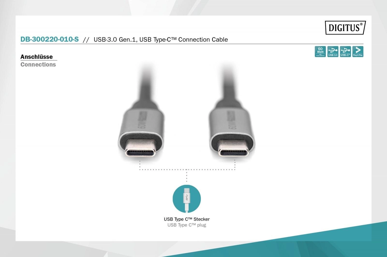 Kabel połączeniowy USB 3.0 60W/5Gbps Typ USB C/USB C M/M 1m Czarny