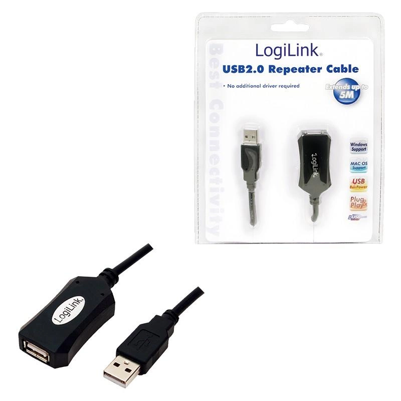 Dzięki zastosowaniu Repeatera marki LogiLink mozna rozszerzyć długość przedłużacza aż do 20m. Istnieje możliwość połączenia maksymalnie 3 repeaterów i przesyłać dane z prędkością 480Mb/s. Dzięki zastosowaniu ekranu urządzenie odporne jest na zakłócenia elektromagnetyczne.