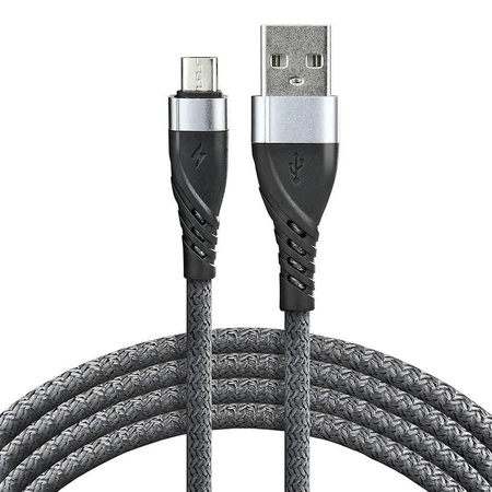 Kabel przewód pleciony USB - micro USB everActive CBB-2MG 200cm z obsługą szybkiego ładowania do 2,4A szary