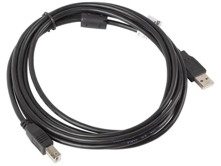 Wysokiej jakości kabel USB 2.0 Lanberg koloru czarnego, do zastosowania połączenia między komputerem a drukarką, skanerem i innymi urządzeniami multimedialnymi/peryferyjnymi.