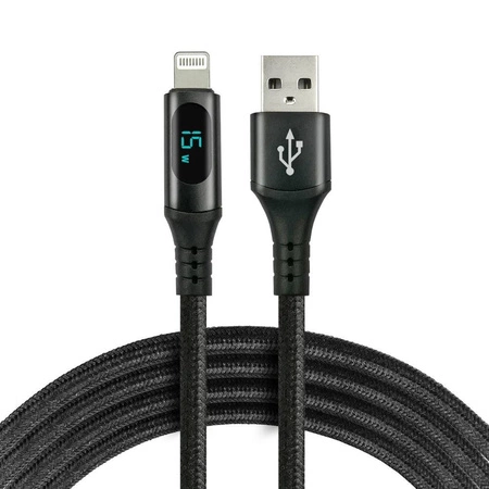 Kabel USB -> Lightning everActive CBB-1IBL 1m 2,4A wbudowany wyświetlacz czarny