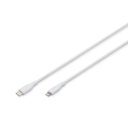 Kabel zasilający DIGITUS silikonowy USB-C - Lightning, USB 2.0 60W, certyfikat MFI, 0,5m biały