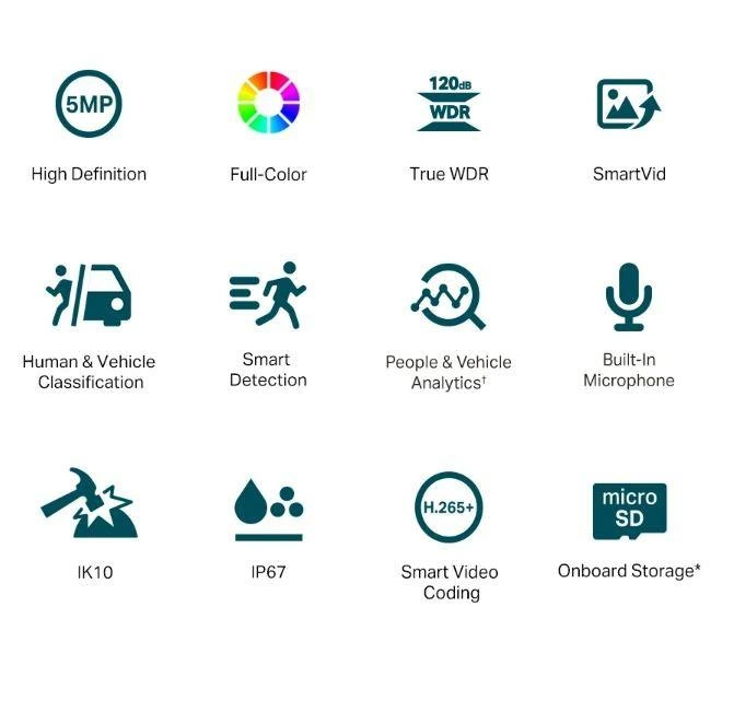 Monitoruj wyraźne i kolorowe szczegóły nawet w środku nocy. Kamera VIGI zapewnia maksymalną rozdzielczość 5MP, kolorowy monitoring za pomocą dużej soczewki, światłoczułego sensora oraz wbudowanego oświetlenia.
