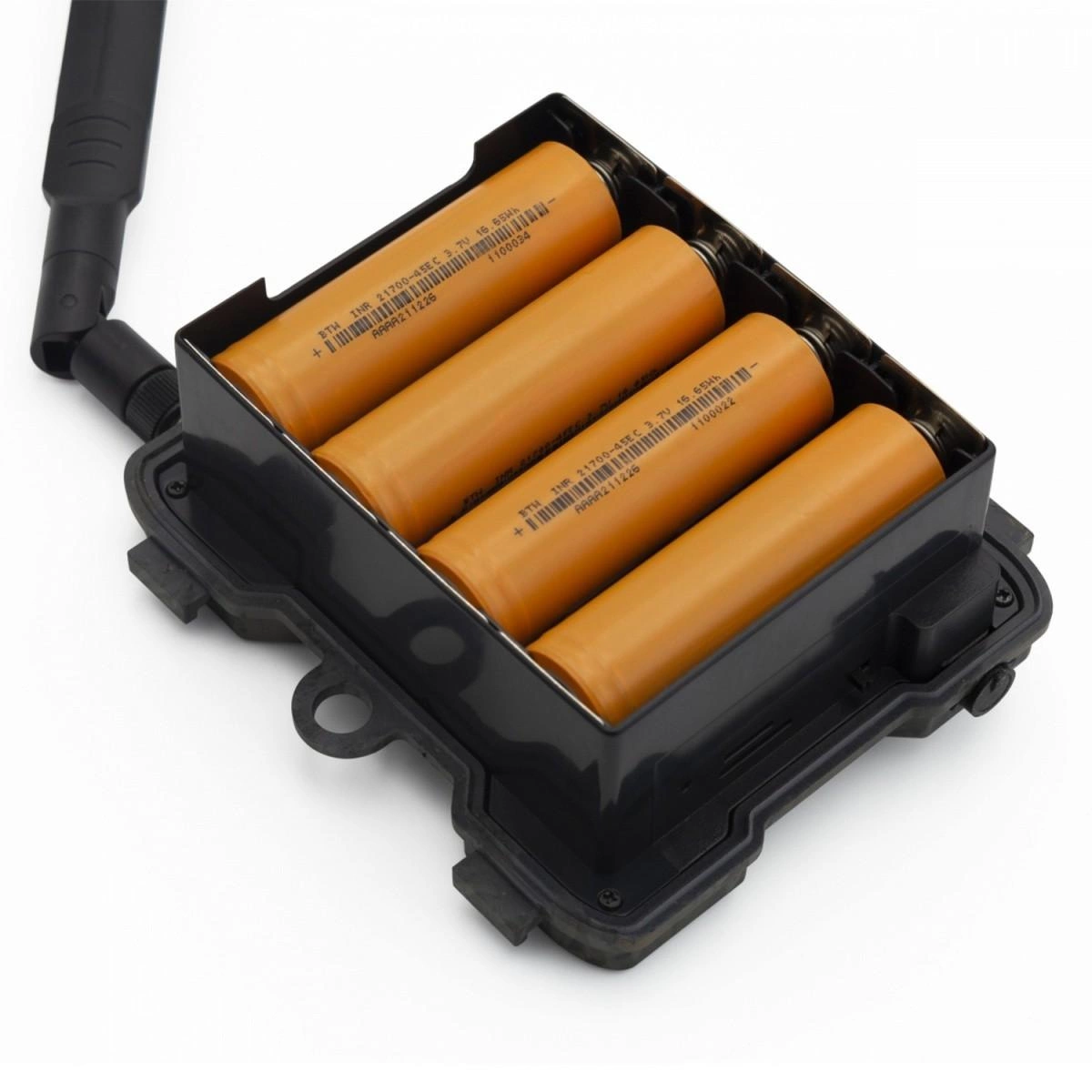 W zestawie znajdziesz wszystkie niezbędne elementy, potrzebne do montażu kamery oraz 4 baterie typu 21700.