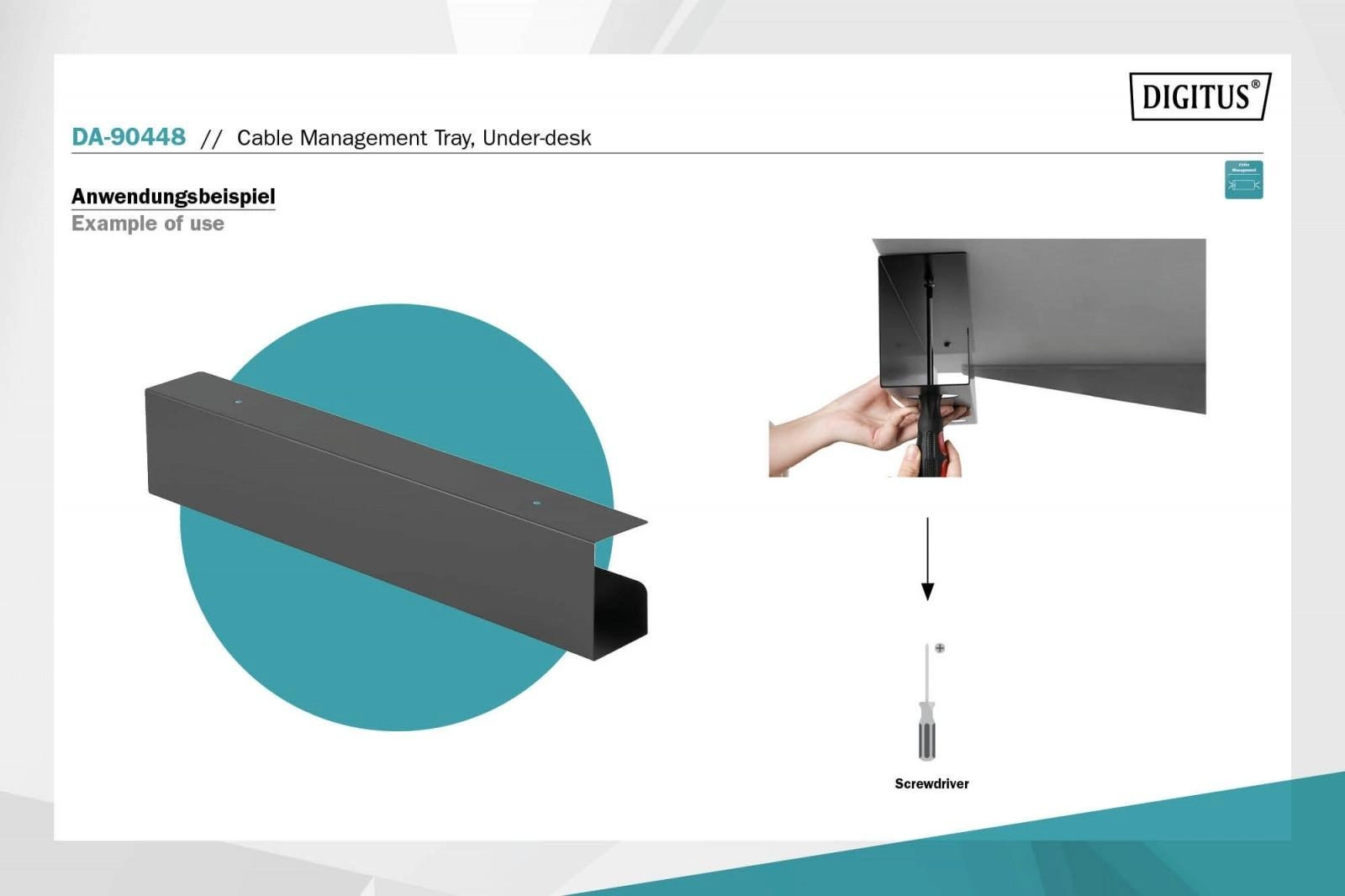 - Zapewnia miejsce do przechowywania kabli i listew zasilających - do indywidualnego montażu pod stołem