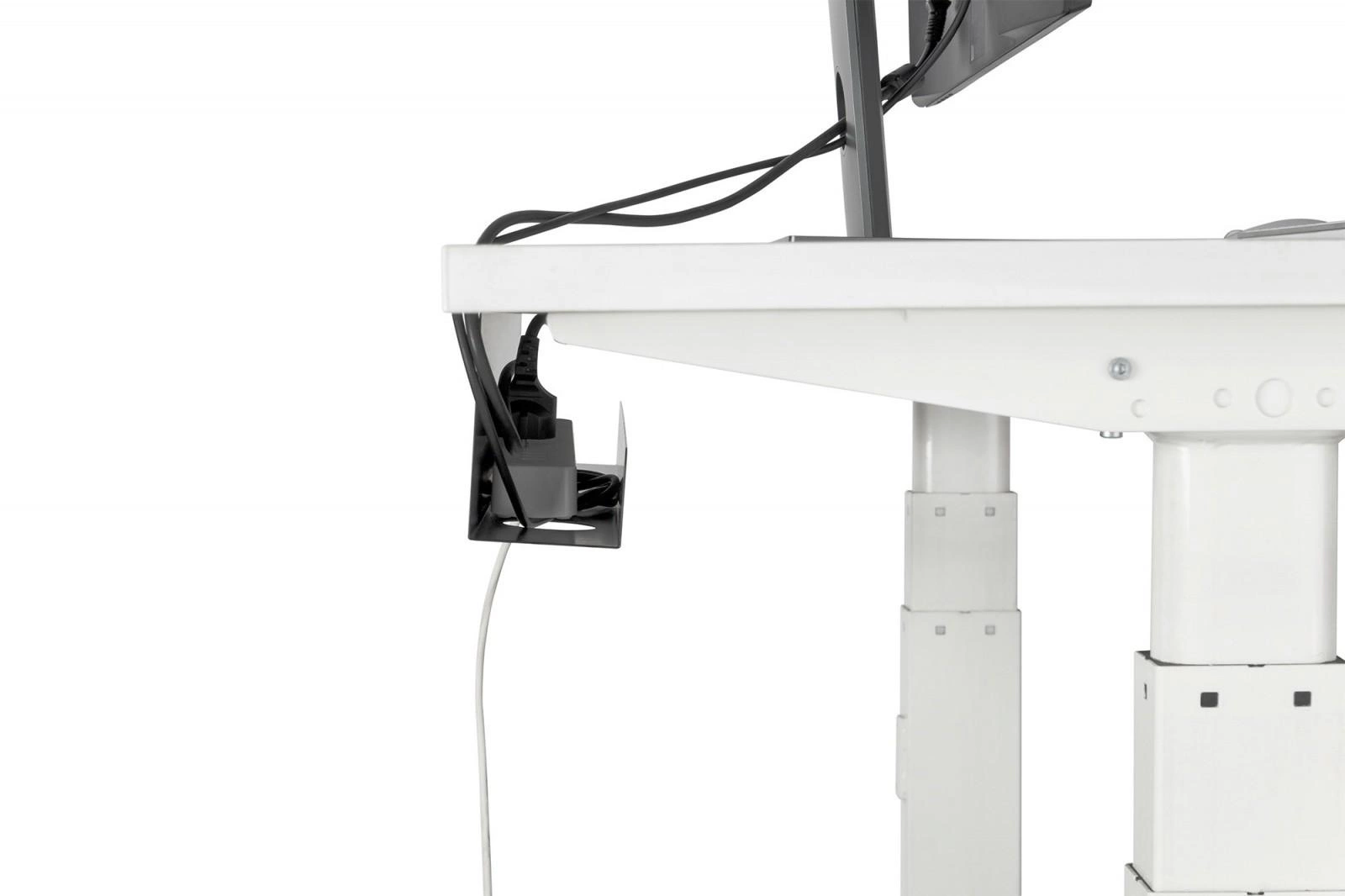 Uchwyt/organizer został zaprojektowany w taki sposób, aby możliwe było łatwe zorganizowanie i ukrycie kabli. Kanał do zarządzania kablami umożliwia przesuwanie blatu biurka do pracy w pozycji stojącej, jednocześnie zapobiegając uszkodzeniu kabli.