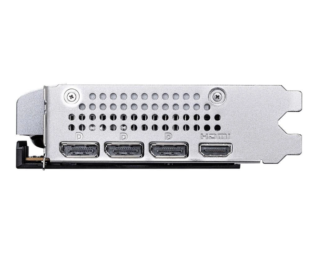 - Wzmocniona mechanicznie konstrukcja: tylna płyta mocująca, która wzmacnia mechanicznie kartę, charakteryzuje się specjalnie wyciętym otworem wentylacyjnym. Przez otwór ten bezpośrednio przepływa powietrze wylotowe.