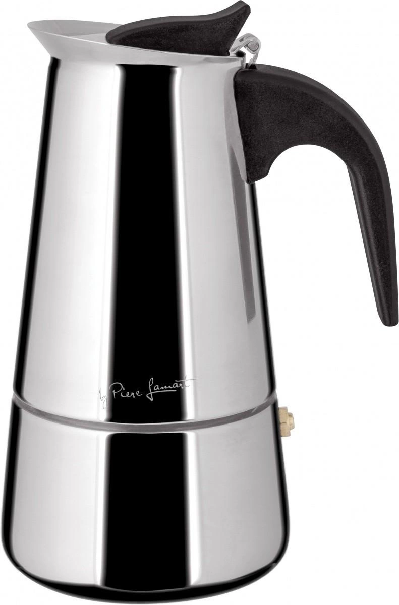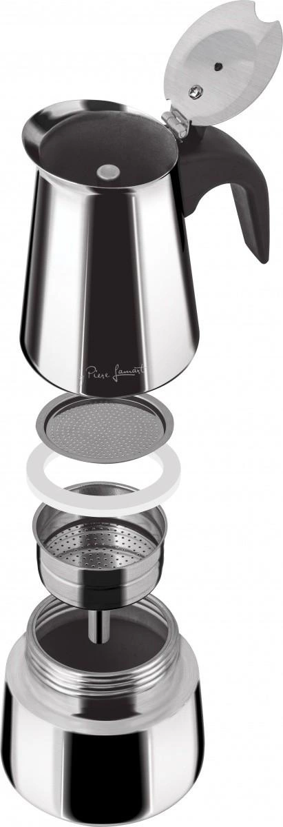 Kawiarka do tradycyjnego przygotowania włoskiej kawy espresso, wykonana ze stali nierdzewnej wysokiej jakości 18/10. Stylowy stożkowy design, ergonomiczny uchwyt z tworzywa sztucznego. Zawór bezpieczeństwa. Produkt ciśnieniowy. Na 2 filiżanki. Do stosowania na wszystkich płytach grzewczych, w tym indukcyjnych.