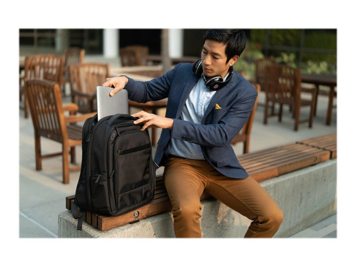 - Bezpieczna przegroda na laptopa z odpornym na przebicie zamkiem błyskawicznym zabezpiecza laptopa lub tablet przed kradzieżą