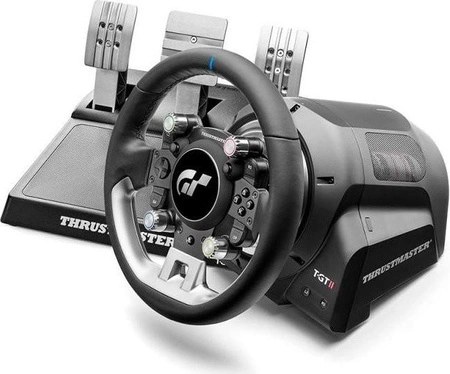 Thrustmaster T-GT II, Kierownica Wyścigowa z Zestawem 3 Pedałów, PS5, PS4, PC, Siłowe Sprzężenie Zwrotne w Czasie Rzeczywistym, Silnik Bezszczotkowy o Mocy 40 Watów, Układ Dwóch Pasów, Technologia Magnetyczna, Wymienna Kierownica.