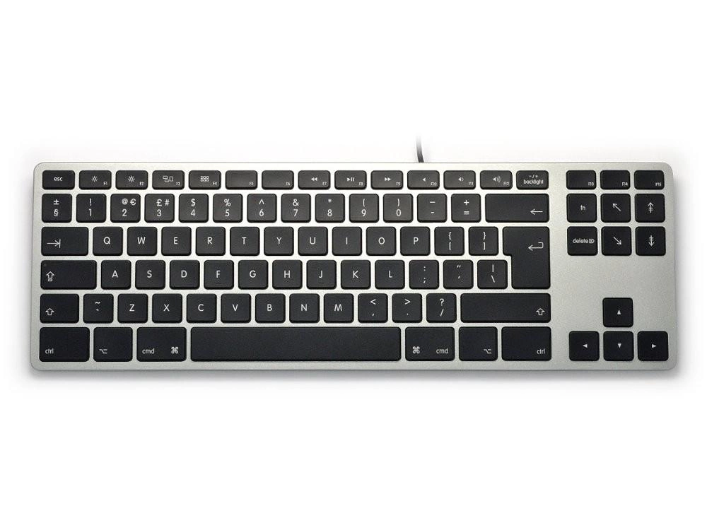 Przewodowa klawiatura Matias posiada, tak jak oryginalna klawiatura Apple, wszystkie przyciski dedykowane do pracy w środowisku macOS. Klawisze funkcyjne umożliwiają regulację jasności ekranu, głośności, sterowanie odtwarzaczem muzyki, itp.