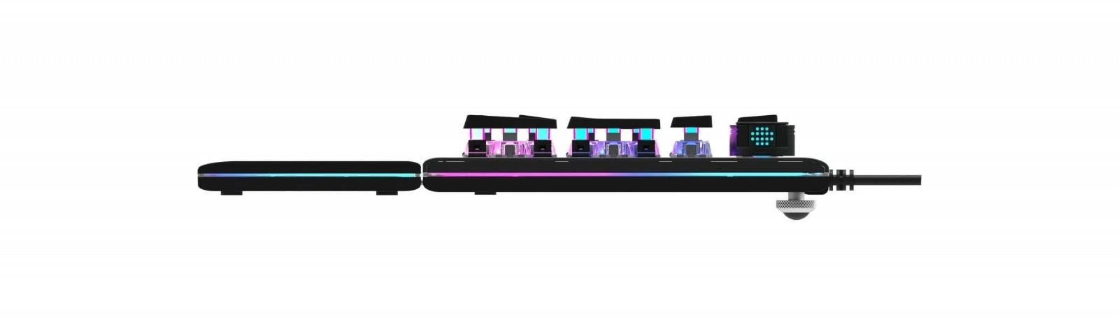 To co wyróżnia serię Aurora to wbudowane pokrętło trybu podświetlenia czy zmiany głośności. Podświetlenie można wyłączyć, regulować jasność a także dopasować do własnych potrzeb. Klawiatura K-5 posiada magnetyczną podstawkę pod nadgarstki, która redukuje zmęczenie i wygląda efektownie dzięki zastosowaniu podświetlanego światłowodu RGB.