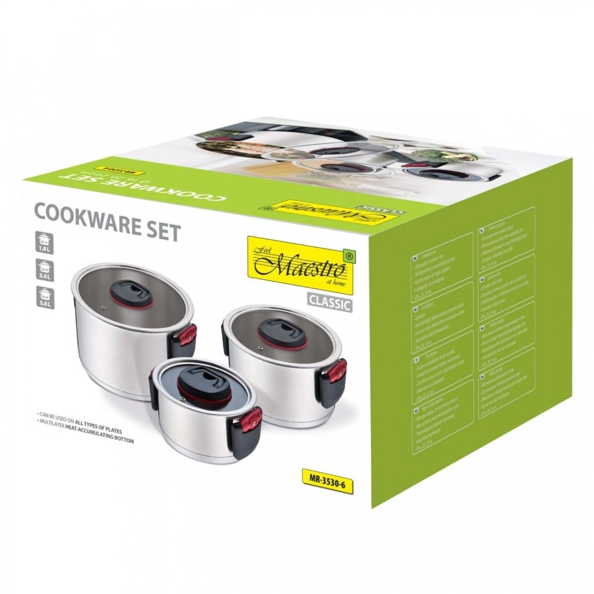 Zestaw garnków ze składanymi uchwytami MR-3530-6 Maestro to doskonałe rozwiązanie dla każdego, kto ceni sobie zarówno jakość, jak i funkcjonalność w swojej kuchni. Ten zestaw 3 garnków z pokrywkami został stworzony, aby ułatwić codzienne gotowanie i spełnić oczekiwania miłośników gotowania.