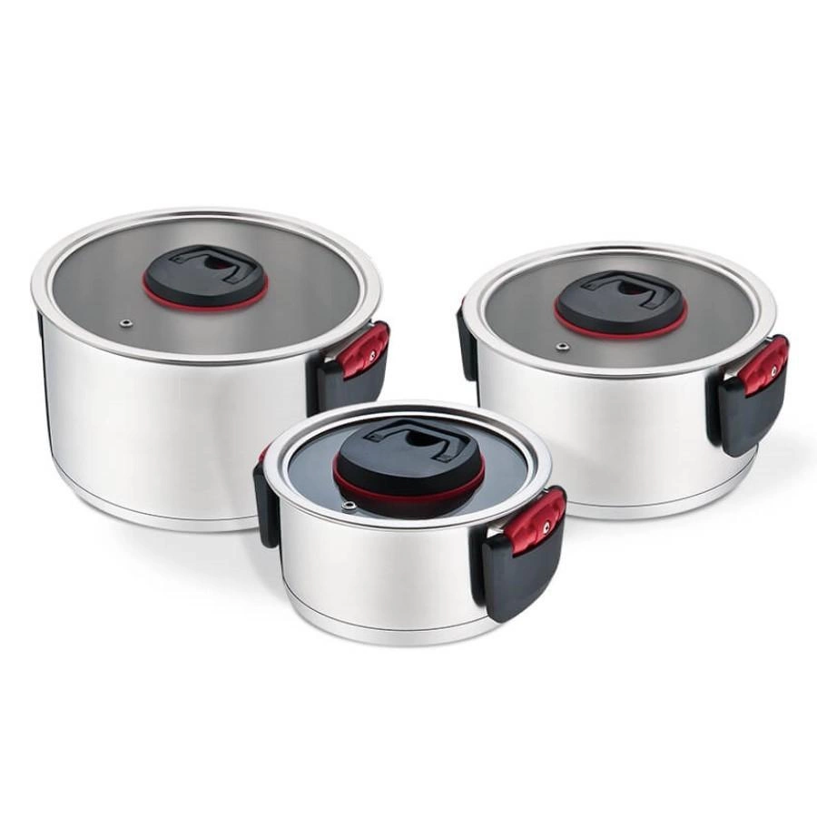 Zestaw zawiera trzy różnej wielkości garnki z pokrywkami, które pozwolą Ci gotować różnorodne potrawy: