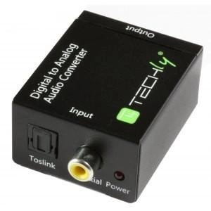 - Konwersja cyfrowego audio z koncentrycznego Coaxial RCA lub optycznego Toslink (S/PDIF) na analogowy sygnał audio RCA L/R