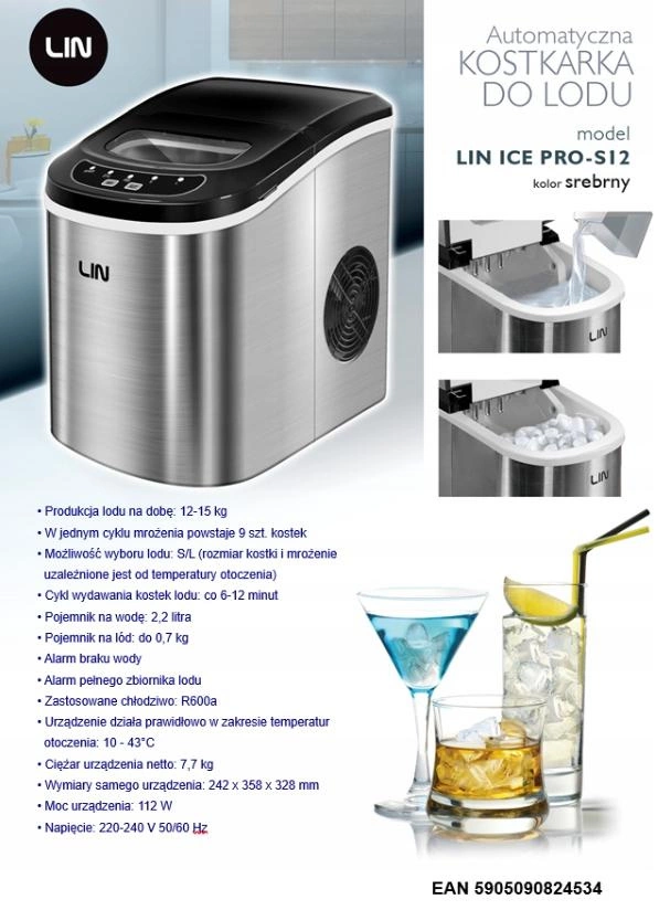 Kostkarka do lodu LIN ICE PRO-S12 srebrna