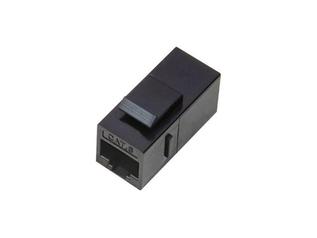 Uniwersalne łączniki kabli krosowych lub instalacyjnych zakończonych wtykiem RJ45. Wyposażone w dwa gniazda RJ45. Spełniają wymagania kategorii 5E. Przeznaczone do kabli nieekranowanych.