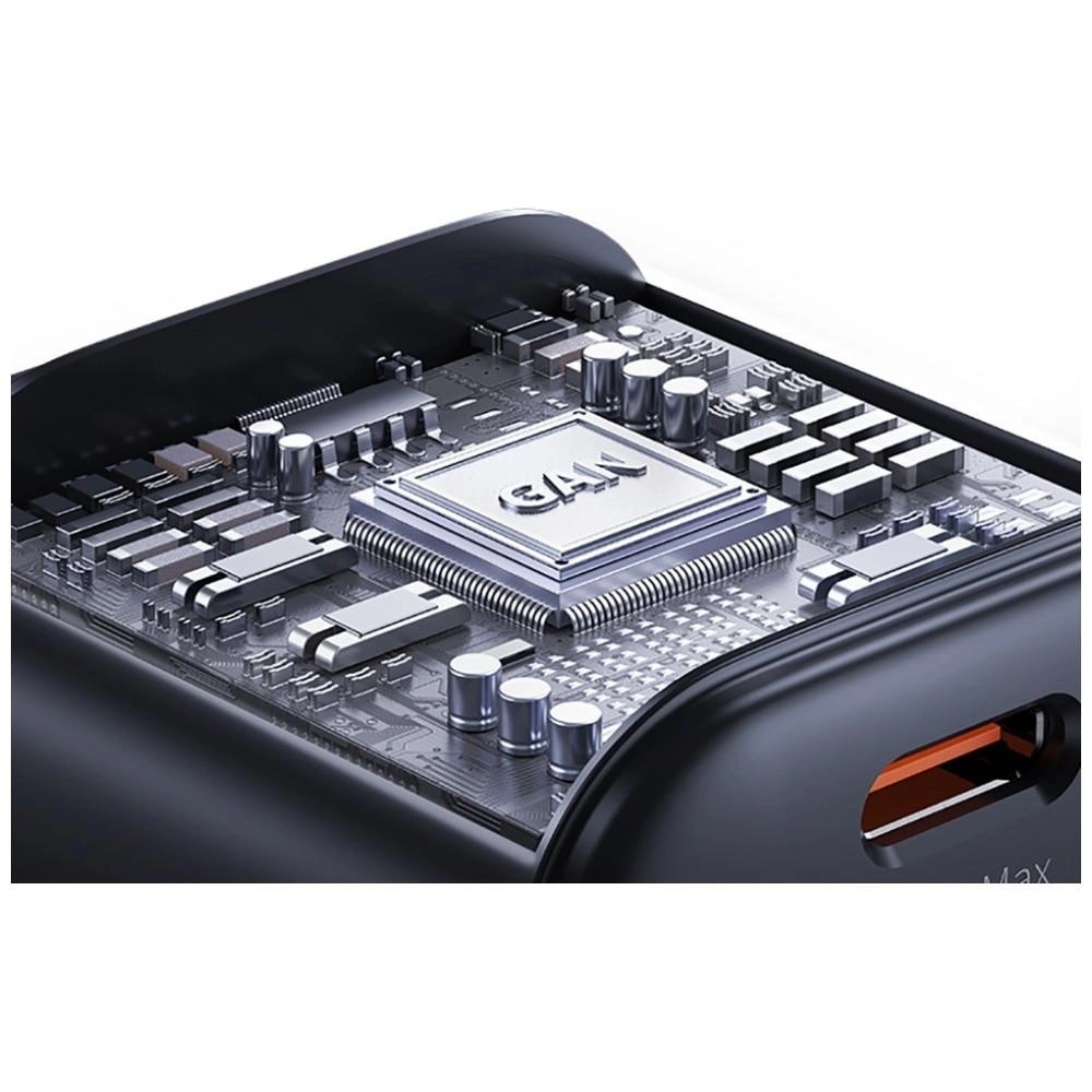 Wewnątrz ładowarki zastosowano nowoczesny układ GaN, który pozwala na efektywne zarządzanie energią przy zachowaniu bardzo kompaktowej obudowy. Dzięki temu ładowarka może dostarczać do 20W mocy przy napięciach 5V3A, 9V2.22A lub 12V1.67A. Mimo swojej niewielkiej wagi zaledwie około 40 gramów oferuje pełną funkcjonalność nie ustępującą większym urządzeniom. GaN to przyszłość elektroniki użytkowej mniejsze wymiary, lepsza wydajność, mniej ciepła.