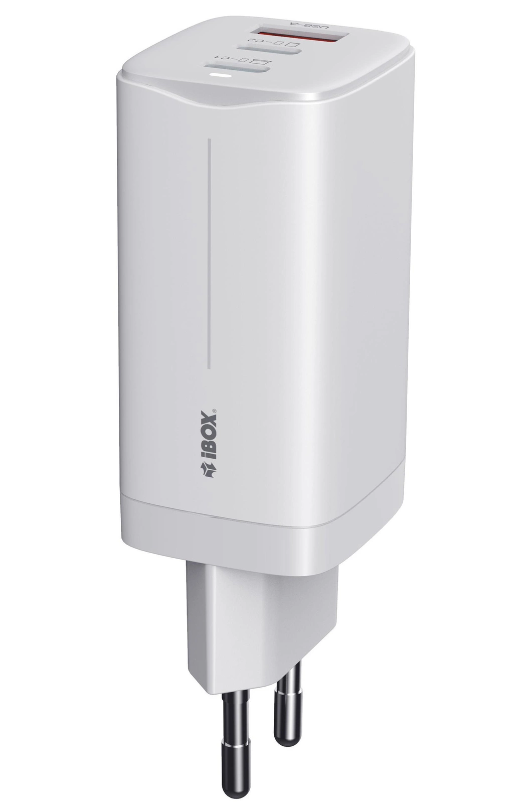 Ładowarka sieciowa GaN iBOX C-65 USB-C PD65W, kabel USB-C, White