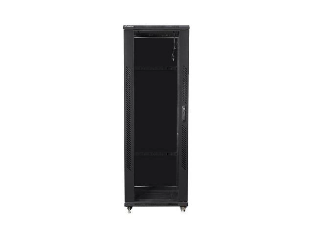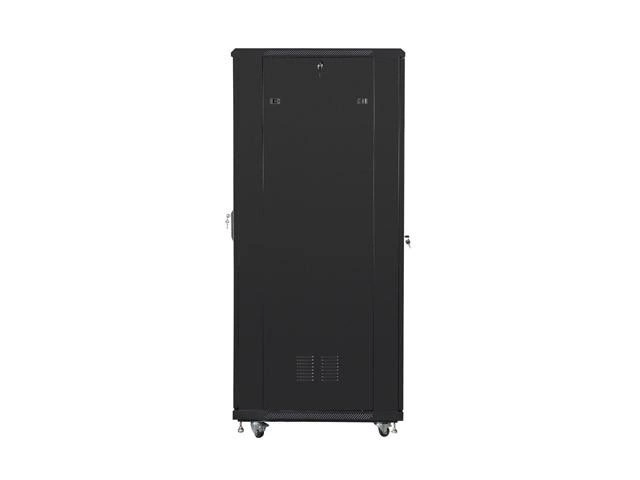 Szafa umożliwia pełną regulację głębokości pionowych szyn montażowych. Wyposażona jest w przednie drzwi ze szkła hartowanego z zamkiem, z możliwością montażu prawo lub lewo stronnego. Posiada zdejmowane boczne panele (z zamkami w zestawie) i tylne solidne stalowe drzwi z zamkiem. Istnieje możliwość wprowadzenia okablowania poprzez zamykany górny i dolny panel (z zaślepkami w zestawie).