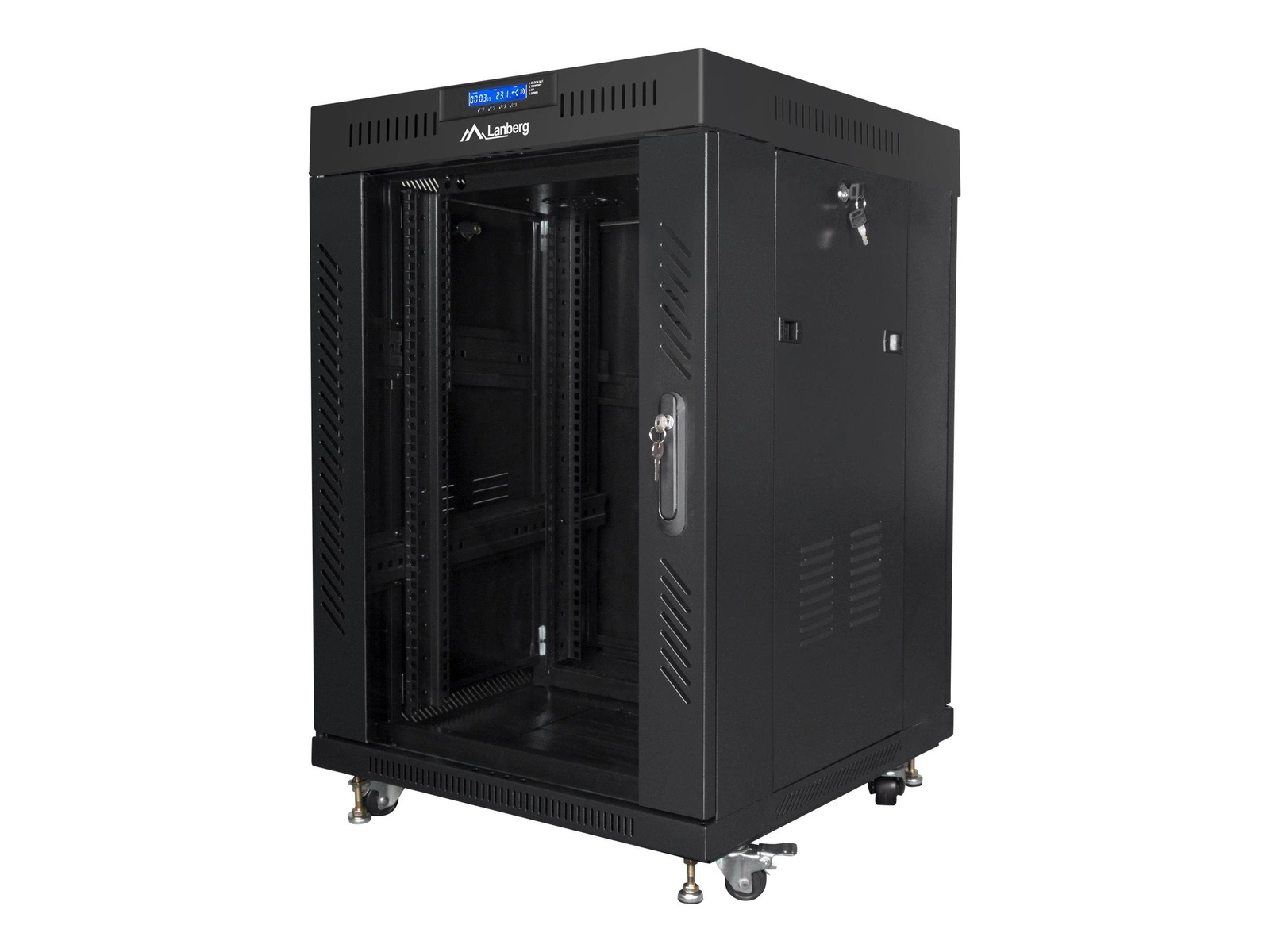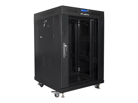 LANBERG free standing rack 19inch cabinet 15U 600x600 glass door LCD flat pack black