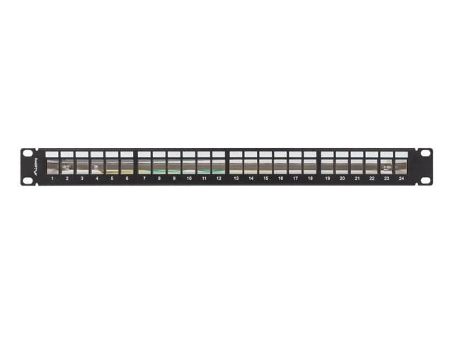 Patch panelu obsadzić można szybko i prosto keystonami sieciowymi RJ45, RJ11, RJ12 jak i audo-video-data np. HDMI, USB, F, BNC itp. Produkt wykonany z stali galwanizowanej co w pełni daje kompatybilność z ekranowanymi przewodami oraz modułami keystone.
