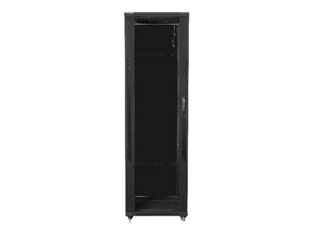 20 x nakrętka klatkowa M6, zamek drzwiowy przedni i tylny, nogi poziomujące, torba na akcesoria, koła z hamulcem, panel wentylacyjny (4 wentylatory), blokady boczne