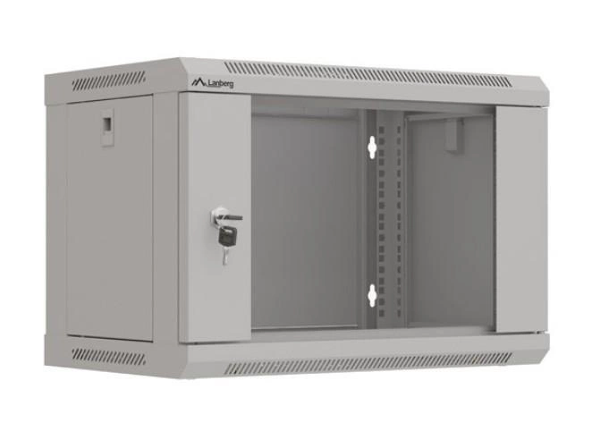 LANBERG Szafa instalacyjna rack wisząca 19 cali 6U 540x350 szara drzwi przeszklone flat pack