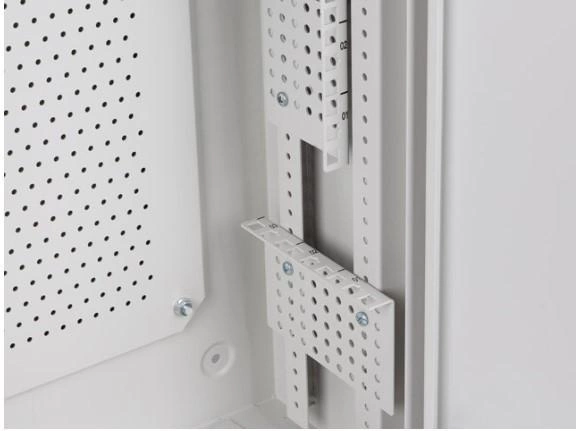 Wnętrze szaf z serii WAF1 zostało wyposażone m.in. w płytę mesh, znajdującą się na tylnej ścianie. Dzięki temu rozwiązaniu możesz łatwo przymocować do niej różne elementy za pomocą śrub M4, zapewniając niezawodne zamocowanie i organizację Twojego sprzętu. W zestawie dołączona jest także szyna DIN, która umożliwia montaż i umieszczenie na niej urządzeń lub akcesoriów zgodnie z własnymi potrzebami. Dodatkowo kotwy montażowe, przewód uziemiający oraz śruby M6 gwarantują nie tylko stabilność, ale także bezpieczeństwo wyposażenia.